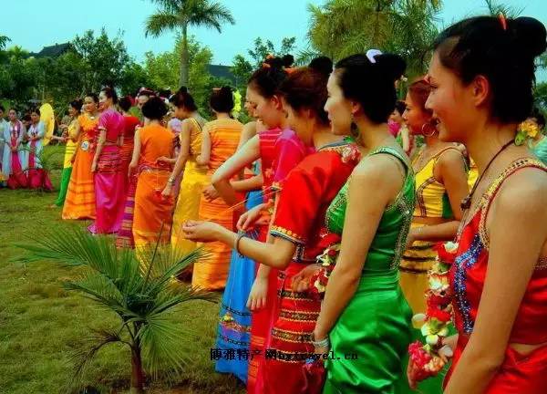 傣族妇女的穿着打扮,是全世界最美丽的,它就像孔雀开屏一样,五彩缤纷,美不胜收,令人叹为观止。只要了解情况的人,都觉得这话一点也不算夸张。傣族妇女一般都长得身材苗条,面目清纯娇美,看上去婷婷玉立,仪态万方,因此素有“金孔雀”的美称。她们不仅长得美,而且还善于打扮,用独具特色的服饰把自己装扮得一个个如花似玉。傣族妇女一般喜欢穿窄袖短衣和统裙,把她们那修长苗条的身材充分展示出来。上面穿一件白色或绯色内衣,外面是紧身短上衣,园领窄袖,有大襟,也有对襟,有水红、淡黄、浅绿、雪白、天蓝等多种色彩。现在多是用乔其纱、丝绸、的确良等料子缝制。窄袖短衫紧紧地套着胳膊,几乎没有一点空隙,有不少人还喜欢用肉色衣料缝制,若不仔细看,还看不出袖管,前后衣襟刚好齐腰,紧紧裹住身子,再用一根银腰带系着短袖衫和统裙口,下着长至脚踝的统裙,腰身纤巧细小,下摆宽大。傣族妇女的这种装束,充分展示了女性的胸、腰、臀“三围”之美,加上所采用的布料经柔,色彩鲜艳明快,无论走路或做事,都给人一种婀娜多姿、潇洒飘逸的感觉。
