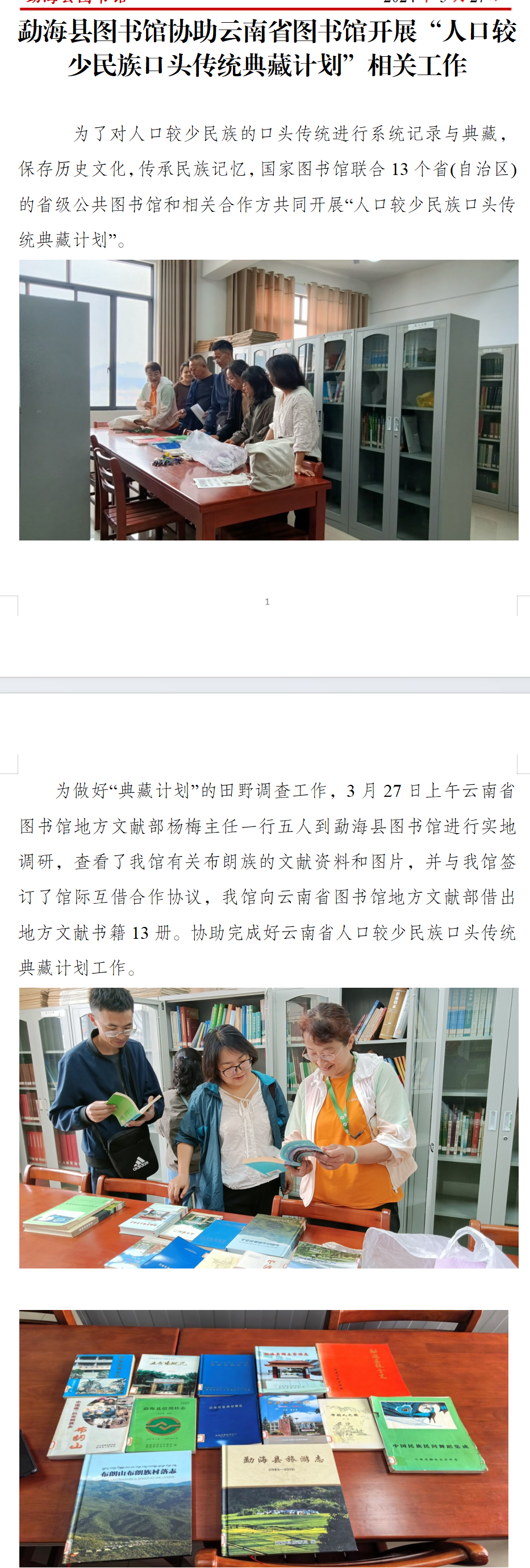 勐海县图书馆协助云南省图书馆开展“人口较少民族口头传统典藏计划”相关工作