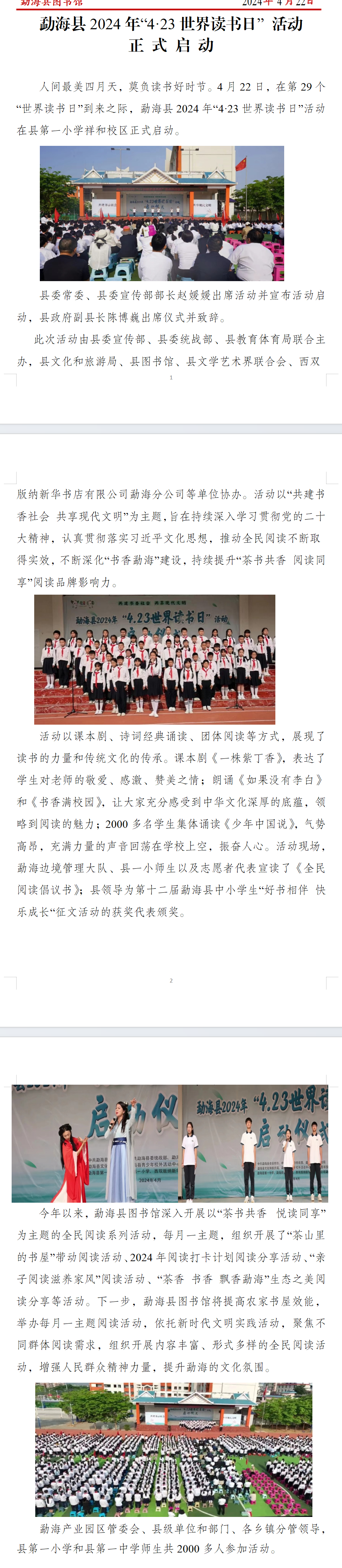 勐海县2024年“4·23世界读书日” 活动正式启动